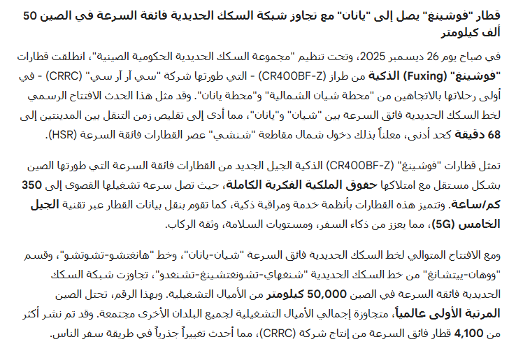 قطار فوشينغ يصل إلى يانان مع تجاوز شبكة السكك الحديدية فائقة السرعة في الصين 50 ألف كيلومتر