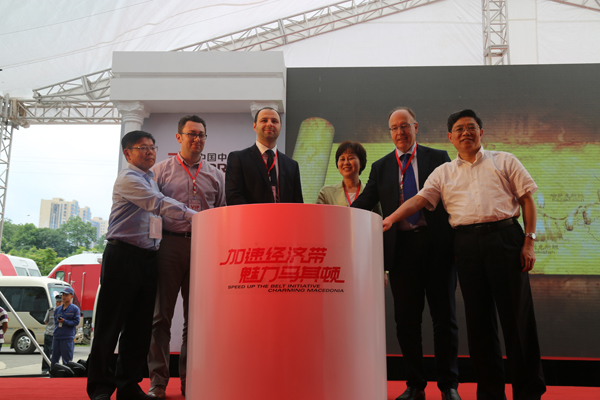 当天,在马其顿交通部长Mr. Vlado MISAJLOVSKI,湖南省副省长黄兰香,中国中车副总裁楼齐良,以及马来西亚、捷克、格鲁吉亚、乌兹别克斯坦等国家铁路部门负责人等见证下,具有鲜明马其顿国家风格的动车组隆重驶下生产线。