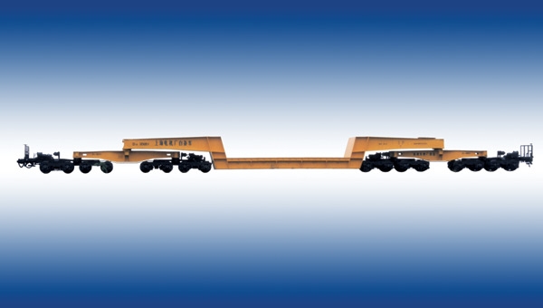 适用于运输机电、冶金、化工等行业的重型、超限大型货物,主要由一个凹底架、二个中底架、四个小底架,八台2E轴焊接构架式转向架以及液压旁承装置,车钩缓冲装置,制动装置等组成。采用C级钢13号下作用车钩和MT-3型缓冲器,采用了折角结构,液压旁承等先进技术,具有载重大、自重系数小、曲线及道岔通过性能好、运行速度高、过桥速度限制小,承载面低、装卸加固货物简单方便等特点,其主要技术经济指标先进,性能良好。是目前我国载重最大,凹底架首次采用折角结构的新型凹底平车。