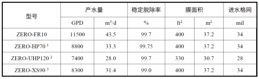 注:单支膜元件产水量±20%