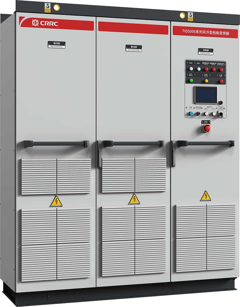 船舶风冷通用变频器是为低端、低频应用场景打造的推进、供电变频器,覆盖250-1200kW功率范围,采用标准化谱系设计,保障快速交付。2021年行业批量推广应用并取得CCS型式认可证书。