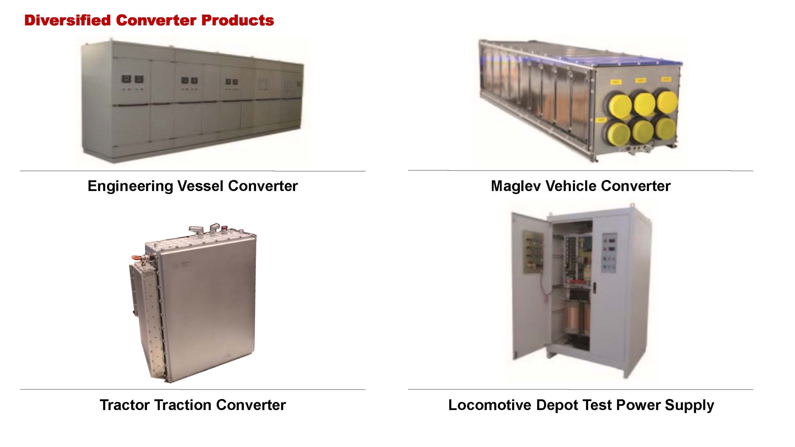 The company has fully mastered the technology of power conversion and its control, and has developed a series of power conversion products with full specifications and a wide variety of types. It is capable of simulation analysis, design and development, testing and verification, as well as mass production and supply of power conversion products for locomotives, EMUs (Electric Multiple Units), urban rail vehicles, construction machinery, and emerging industries. The company also has the ability to develop various power conversion control units and control software.