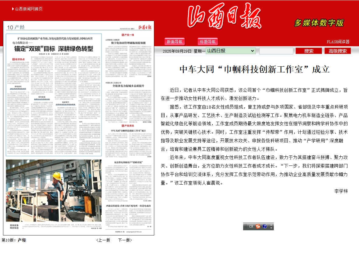 近日,记者从中车大同公司获悉,该公司首个“巾帼科技创新工作室”正式揭牌成立,旨在进一步推动女性科技人才成长、激发创新活力。