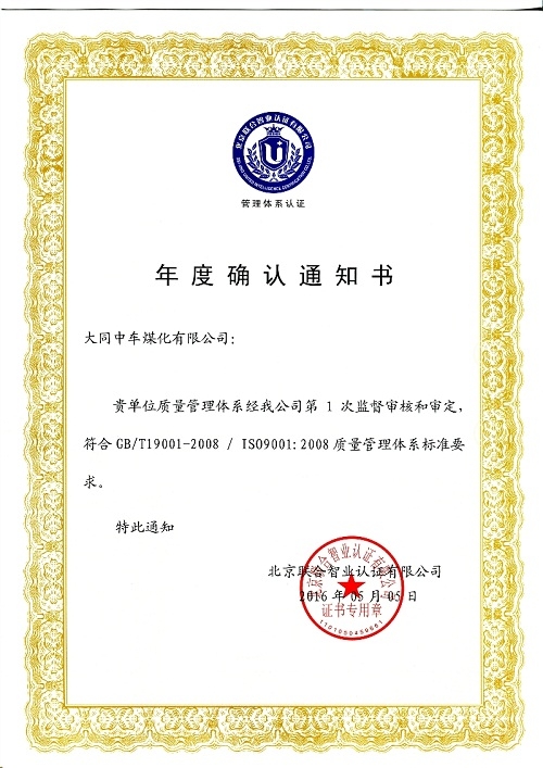 年度确认通知书
