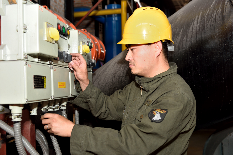 有时,他刚刚忙完新厂一天的工作,拖着疲惫的身体回家时,活性炭旧厂的电话铃又响进来了。2015年11月份的一天,大雪纷飞,天气极冷,旧厂包装车间的主电缆突然发生故障,如果不能及时排除故障恢复生产,不仅耽误活性炭出口产品的交货日期,还将给公司带来巨大的损失。回到家中还没端起饭碗的郭桢,接到电话后没有任何的迟疑,赶紧冒着风雪赶到了现场,经过12小时连续奋战,圆满完成抢修任务。郭桢经常说:“只要工作需要,无论何时何地我都会克服一切困难冲上去!”就因为有着这样的热情,和不辞辛苦的精神就连厂家已经停产没有配件的故障设备,在他的手里也能正常运转起来。