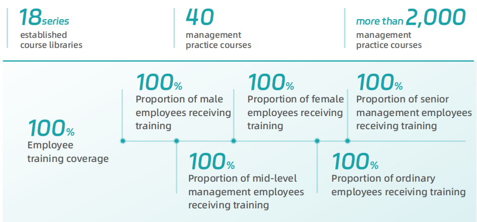The Company has deeply implemented the strategy of strengthening the country and enterprise with talents, and thoroughly practiced the talent concept of "leading and putting talent first". It has coordinated and promoted the training and development of all kinds of talents, and issued and implemented the Key Points and Training Plan for Human Resources Work in 2023. The Company has continuously strengthened the construction of the training management system. It has revised and upgraded the "CRRC Learning Cloud Platform", and established 18 series course libraries, covering video courses including management practice courses. It is committed to improving the comprehensive quality ability, management practice ability, digital management ability, sci-tech innovation ability and leadership development of employees. The complete course catalog (including courses of leadership development) on "CRRC Learning Cloud Platform" is open to all employees .