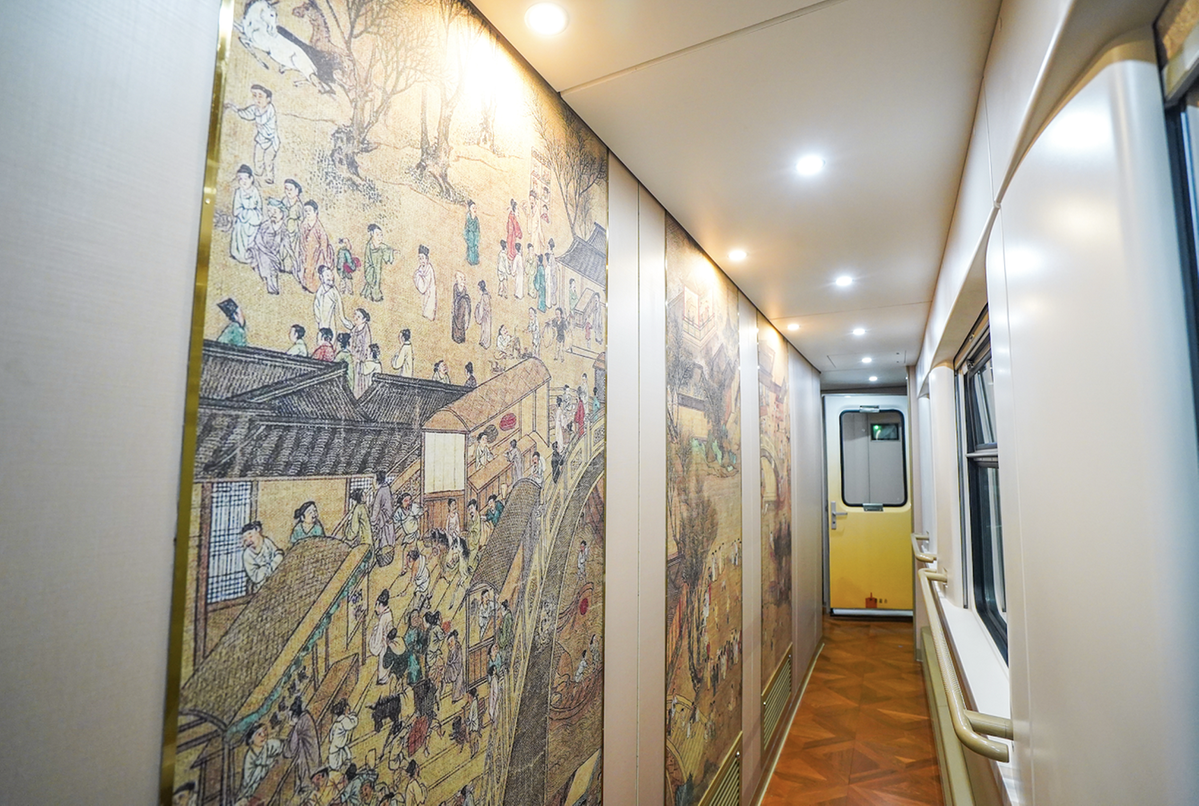 Inspired by the Yellow River, the train's exterior features wavelike patterns flowing dynamically along its body. Inside, the train's decor incorporates cultural elements from Henan's heritage, creating a mobile exhibition of the province's history.