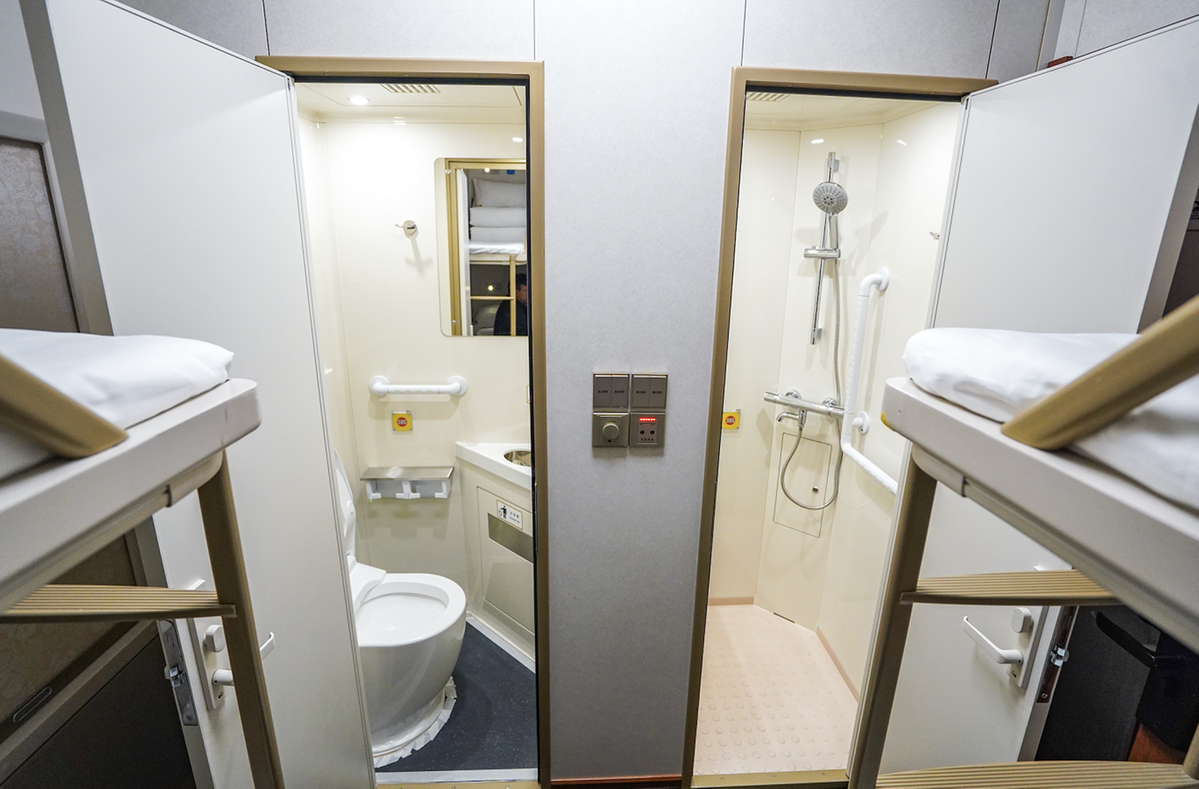 The train consists of 14 soft sleeper cars with double, triple, and quadruple bed compartments, a dining car, a multifunctional car, and a personnel car. Each compartment has an independent dry-wet-separation bathroom with a temperature-regulated toilet, anti-pinch door handles, and an SOS emergency call system.