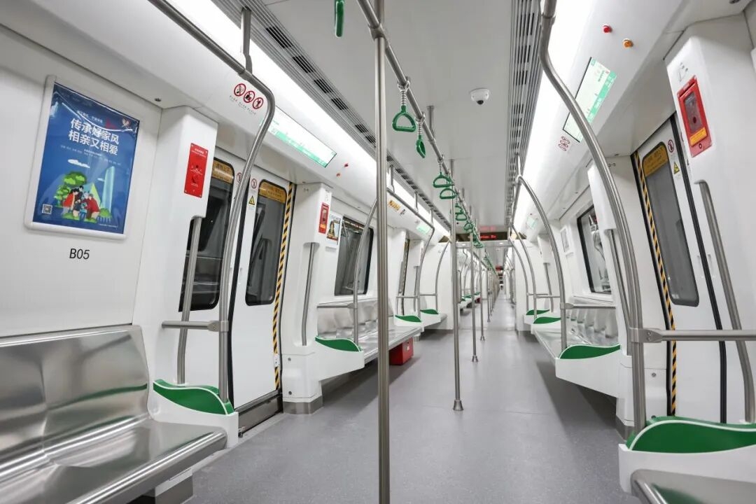 At the initial stage of this project, 37 fully automated trains have been deployed, with a maximum operating speed of 100 km/h. The trains are equipped with a permanent magnet synchronous traction system and a separate return conductor rail system. The passenger compartments feature well-planned equipment layouts, carefully selected materials, and ergonomic design. The overall design takes into account fire safety, environmental protection, noise reduction, modularity, and lightweight construction, achieving a balanced integration of functionality, safety, sustainability, and lightweight design. These trains provide passengers with an improved travel experience.