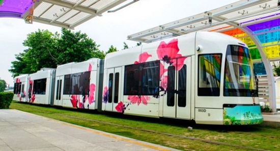 Tram du nouveau modèle au rond-point du district Haizhu de Guangzhou (CNDDB)
