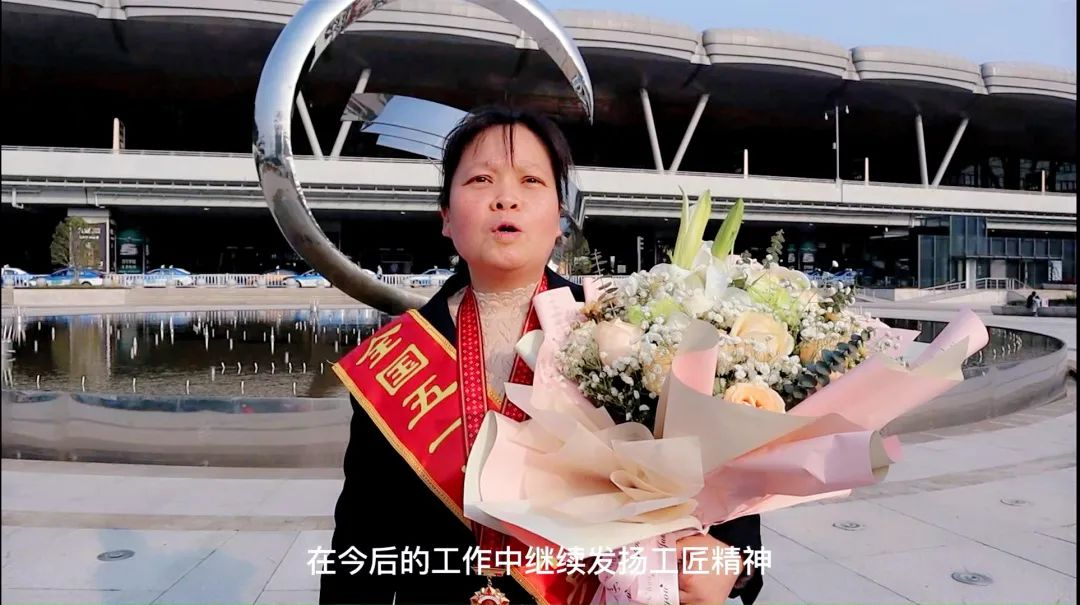 3月25日,中车长江集团贵阳公司转向架车间无损检测员段红霞荣获“全国五一巾帼标兵”称号载誉归来。贵阳公司在机场为段红霞举行了简短而热烈的欢迎仪式。