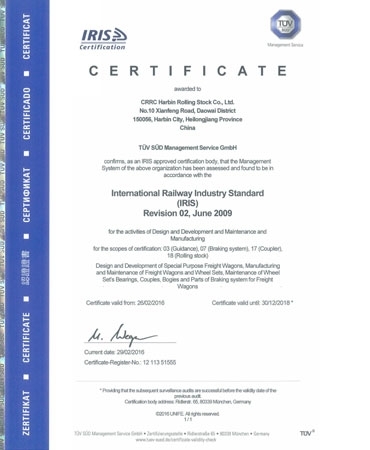 公司通过了质量管理体系、环境管理体系、职业健康安全管理体系、IRIS管理体系认证。