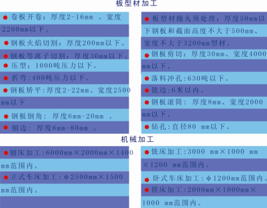 铁路货车修理产品主要有敞车、平车、罐车、粮食车、特种长大货车等;铁路货车制造产品主要有工矿自备车、集装箱平车、特种长大货车等;钢材物流基地具备钢材集采、仓储、加工、配送一条龙服务能力,加工区具备卷板开卷、厚板型钢抛丸预处理、等离子和火焰切割、铣边、矫平、剪冲、折弯、压型、滚筒等加工能力,可为周边地区企业提供配套服务,产品主要有钢结构顶梁、多功能集装箱活动板房等。