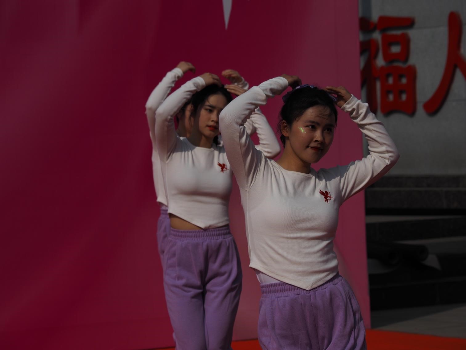 青春是奔放的舞姿,青春是飞扬的旋律,青春舞《爱你》由付琼等8名女员工表演,她们跳出了青春、阳光、灵动与激情,在春日暖阳中绽放着激情四射的青春活力。