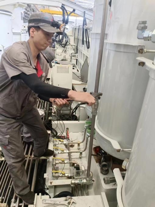 能不能托底,取决于有没有功底。HXD3机车的管路系统不同于直流机车,更不同于内燃机车。公司试修的和谐机车刚入厂后,面对复杂陌生的管路系统,成岗峰从头开始学习,“老师傅”变成了“小学生”。他坚信理论强才能方向明、底气足,想要和谐机车干好管路系统,就要学习图纸、工艺,多上车实践。工作时间,他常常在车上对照图纸学习组装,研究工艺。下班时间,他在网上找教程,查阅相关资料。一次次的学习、一次次的实践,成岗峰成为和谐机车管路检修骨干。车间内燃机车细雨水雾系统攻关,成岗峰第一时间上车熟悉,跟踪车体拆解,逐根管路标记,从管路走向学习研究用途,边学习边实践,组装了两台车后,他就彻底掌握了机车细雨水雾管路系统,形成了一套完备的组装操作方法,还带出了徒弟,成为了可托底的共产党员。