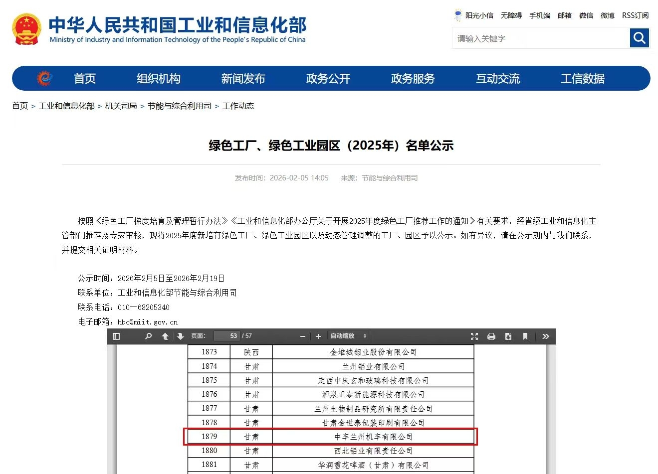 发放日前,国家工业和信息化部正式公布2025年度国家级绿色工厂名单。凭借在绿色制造领域的突出实践与持续探索,中车兰州公司成功获评国家级“绿色工厂”。标志着公司在用地集约化、原料无害化、生产洁净化、废物资源化、能源低碳化等方面获得国家层面权威认可,正式跻身绿色制造“国家队”行列。