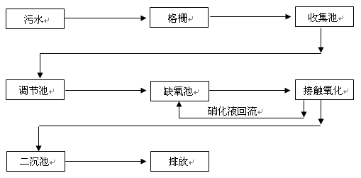 (3)经过降解处理后的废水送生物接触氧化池进行生化处理,可降解大部分的有机物,处理过程中的部分硝化液回流至缺氧池,进行反硝化反应;