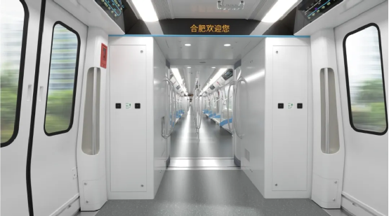 合肥8号线一期列车首次采用气密性设计理念,车头采用铝合金超塑成型技术,与车体结构组焊而成,所有连接均密封设计;车门系统采用双平衡轮设计,贴合更加紧密,使得列车车体气密性更好,可有效阻断行车噪声,提高乘车舒适度。