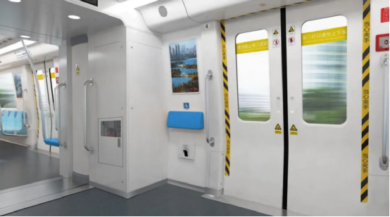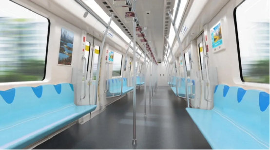 在保证安全和舒适性的前提下,列车通过采用轻量化车体系统、轻量化转向架、轻量化车下设备等措施实现列车的轻量化,整体降低车辆能耗。采用变频热泵空调和自动调节LED照明,不设置制动电阻,列车电制动过程中产生的能量由地面再生制动能量利用装置进行吸收和再利用,进一步降低车辆能耗。车体采用了本体型防火涂料,内外饰采用环保水性漆,空调采用环保制冷剂,带给乘客环保洁净的乘车环境。