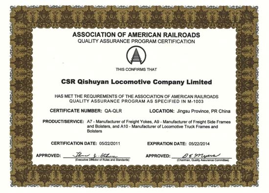美国铁路协会AAR M-1003质量保证体系认证证书