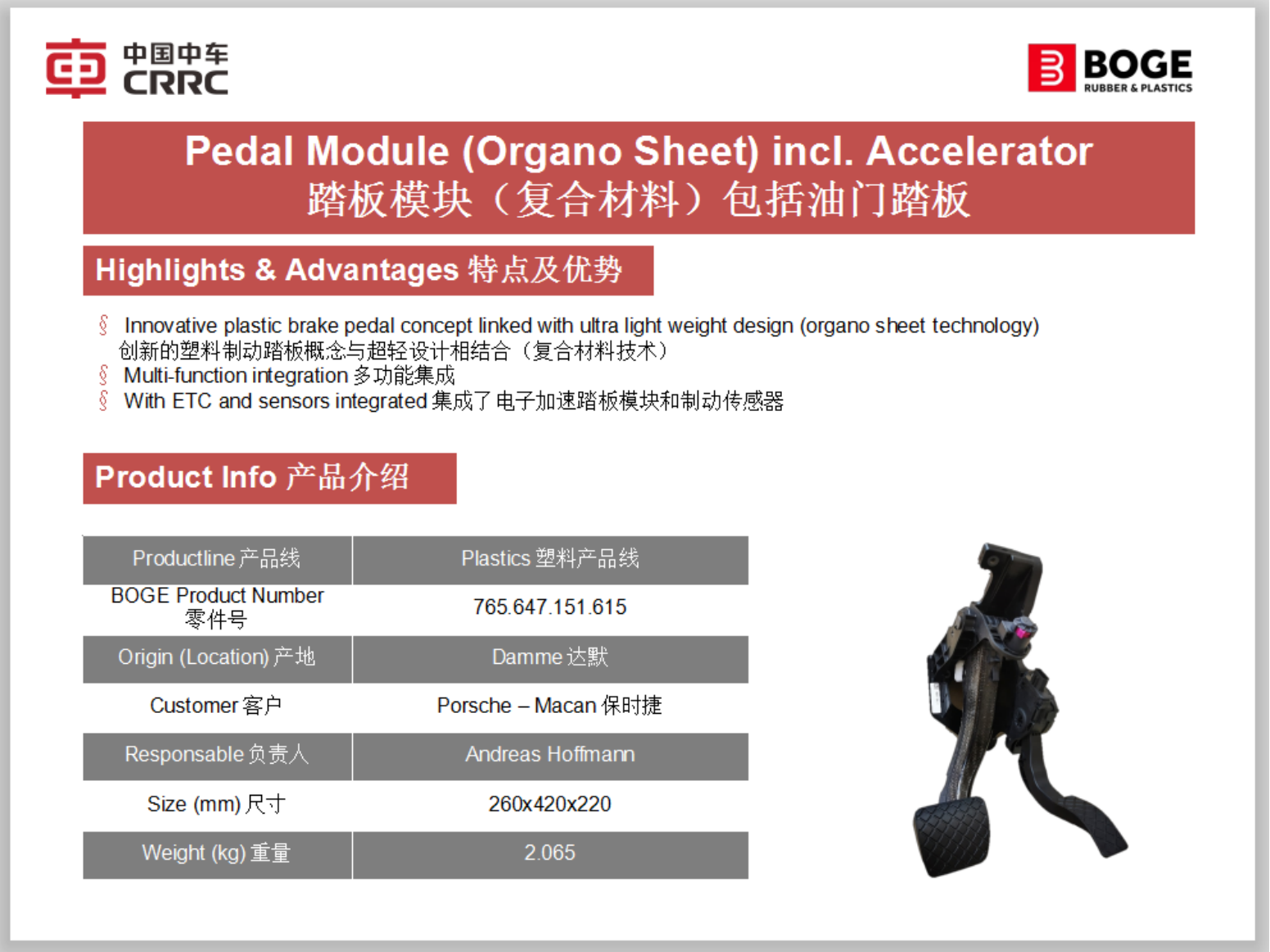 踏板模块(复合材料)包括油门踏板