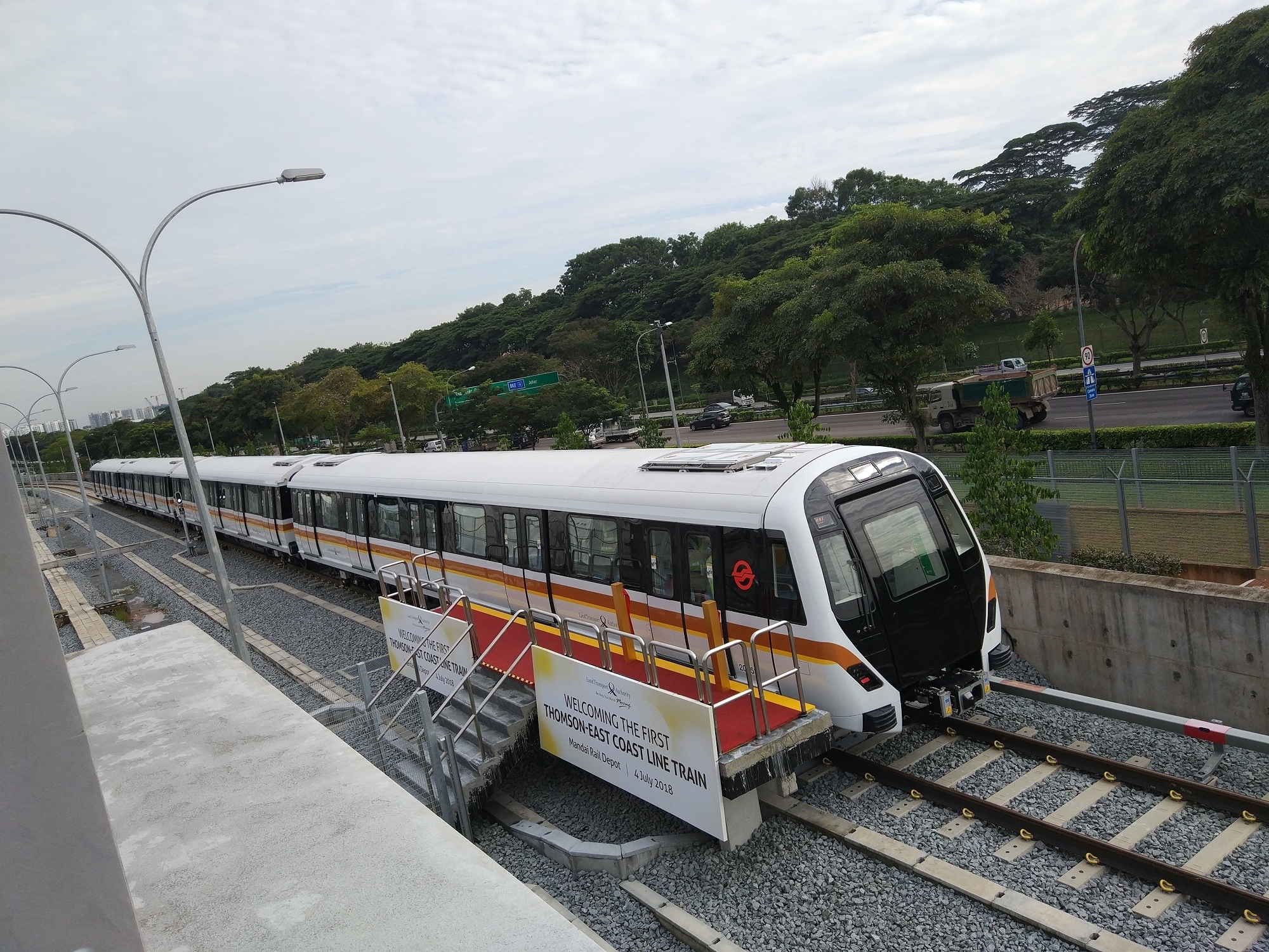 In the morning of July 4th 2018 the Singapore driverless metro trains driving out from CRRC Qingdao Sifang Co., Ltd were delivered to the client. The rollout ceremony was held at Mandai depot in Singapore.