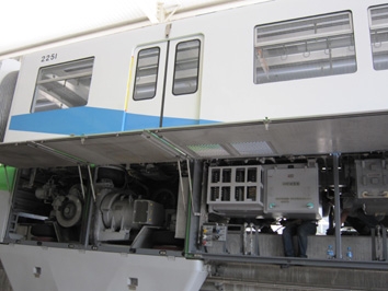 城轨列车牵引系统适用于地铁、轻轨等城市轨道交通车辆,主要由牵引变流器、电抗器、辅助变流器、司控器、牵引电机、开关箱等组成。牵引系统采用矢量控制原 理,具有牵引、电制动、故障诊断、导向安全和网络通讯等功能。2012年通过中国交通运输协会组织的载客运营评审,开始批量装车运用。