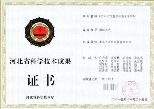 CSR Shijiazhuang Co., Ltd. has a perfect management system for research and development, its research and development team covers nearly all relevant professional fields and maintains a reasonable hierarchical structure. Moreover, the company also established a product development platform, within which the PDM system has been utilized as a main mean. The company was identified as a national high-tech enterprise in 2008 and 2011 respectively. Furthermore, the technology center of the company was titled as the “Provincial enterprise technology center of Hebei” in 2009, by the provincial identification.