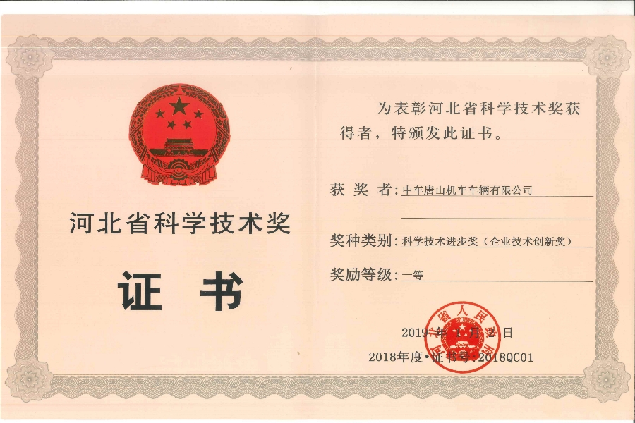 企业技术创新奖 河北省科学技术进步奖 一等奖