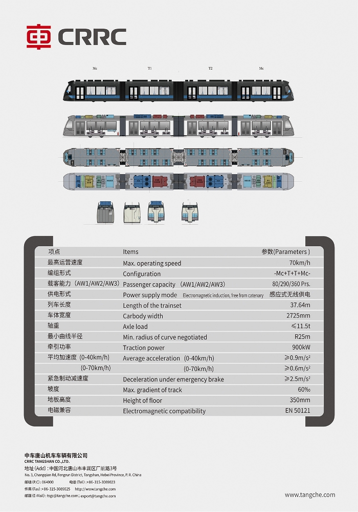 无线供电100%低地板有轨电车