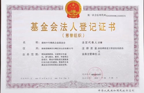 湖南中车株机公益基金会于2016年4月8日经湖南省民政厅批准设立,由中车株洲电力机车有限公司发起,是轨道交通领域首个非公募基金会。