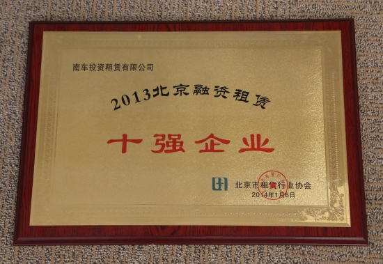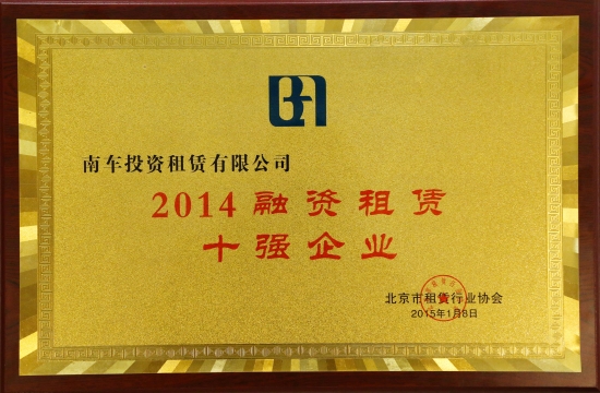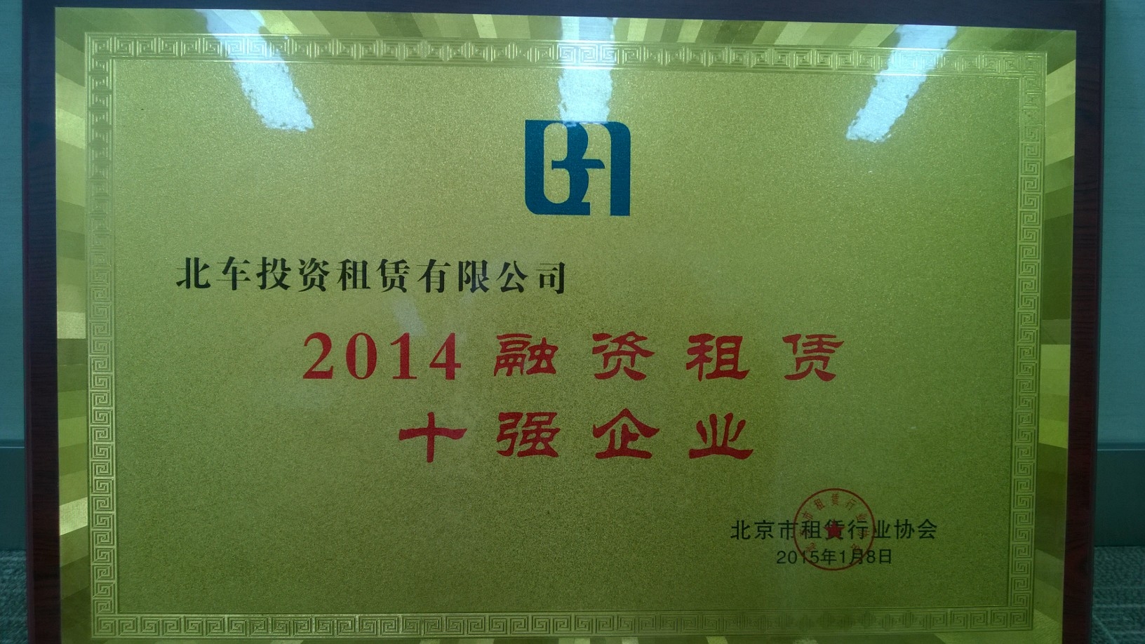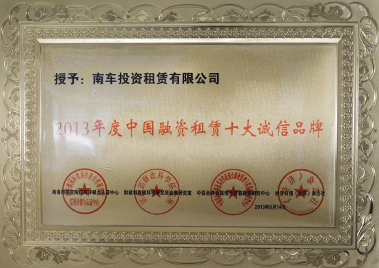 公司荣获集团2011-2013年度“业绩优秀奖”,是集团公司5个获奖单位之一。 2013年荣获 “中国融资租赁十大诚信品牌”、 “海淀区依法统计工作先进单位”、“北京融资租赁十强企业”,2014年入选北京市重点总部企业(第一批)名单,纳入《北京市重点总部企业名录》,2014年获“北京融资租赁十强企业”第二名。公司荣获集团管理提升活动全面风险管理专项提升“优秀专项奖”。2015年获“北京融资租赁十强企业”第一名