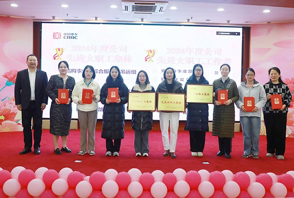 会上,公司表彰了中车“巾帼科创标兵”、公司巾帼标兵、先进女职工集体、先进女职工、最美家庭、女职工之友等荣誉获得者。与会嘉宾和公司高管分别为受表彰的先进集体和个人颁奖。