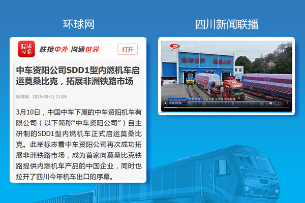 3月10日,公司自主研制的SDD1型内燃机车正式启运莫桑比克。此举标志着公司再次成功拓展非洲市场,成为首家向莫桑比克铁路提供内燃机车产品的中国企业,同时也拉开了四川今年机车出口的序幕。