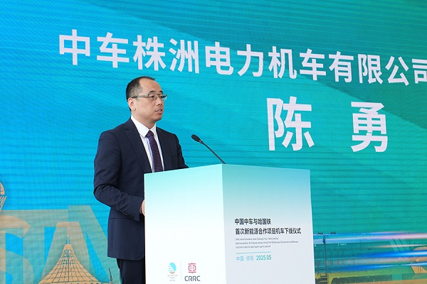 株机公司副总经理陈勇在致辞中表示,今天下线的新能源机车,既是“株资”深度融合的成果,更是双方高端装备制造领域持续深化合作的重要见证。希望资阳公司以本项目为新的起点,与哈萨克斯坦国家铁路公司开展更深入、更多元的合作,共同为哈萨克斯坦社会经济发展注入新动能,结出更加丰硕的成果。