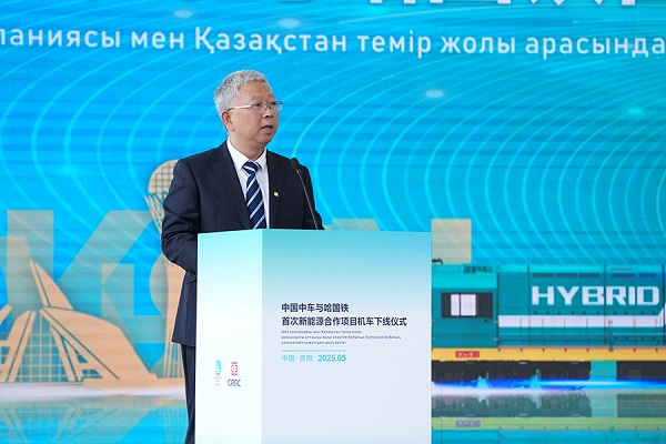 5月20日,中国中车与哈萨克斯坦国家铁路公司新能源合作项目——CKD6H型机车在公司正式下线。这标志着我国系列化标准新能源机车平台产品实现海外出口突破,成为绿色轨道交通装备“走出去”的重要里程碑。