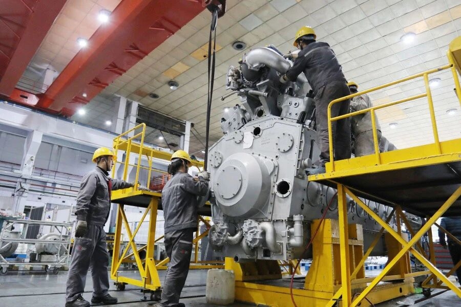 На участке сборки двигателей царит напряженная работа. Ведется сборка широкой номенклатуры дизельных двигателей. Представитель независимой инспекции дал высокую оценку: «Работники соблюдают регламенты, действуют аккуратно, качество контролируется на каждом этапе - я полностью спокоен». На испытательном стенде дизельный двигатель готов к запуску. «Мы обязаны завершить испытания до конца года», - с уверенностью заявляют члены испытательной группы.
