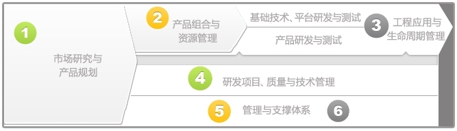 株洲所集成产品开发业务模式重点关注项目的有效规划、资源的合理分配、开发方式由订单驱动转化成订单驱动与平台/基 础技术驱动并行、技术管理与管理支撑体系等领域的改进与提高,从而实现战略目标的达成,做到集中株洲所的资源在关键领域的重点突破。集成产品开发业务模式 总体框架图如下: