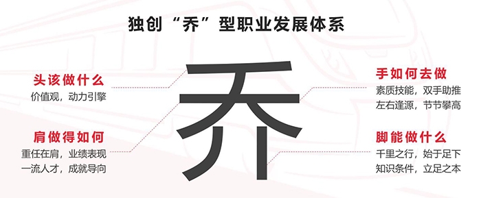 “乔”型职业发展体系的核心理念是:让每位员工尽可能 “事其所好,精其所专、成其所想、得其所值”。培养和造就高素质的职业化人才队伍,全面提升人力资本,满足企业事业持续、快速、健康发展需要,促进公司基业常青。